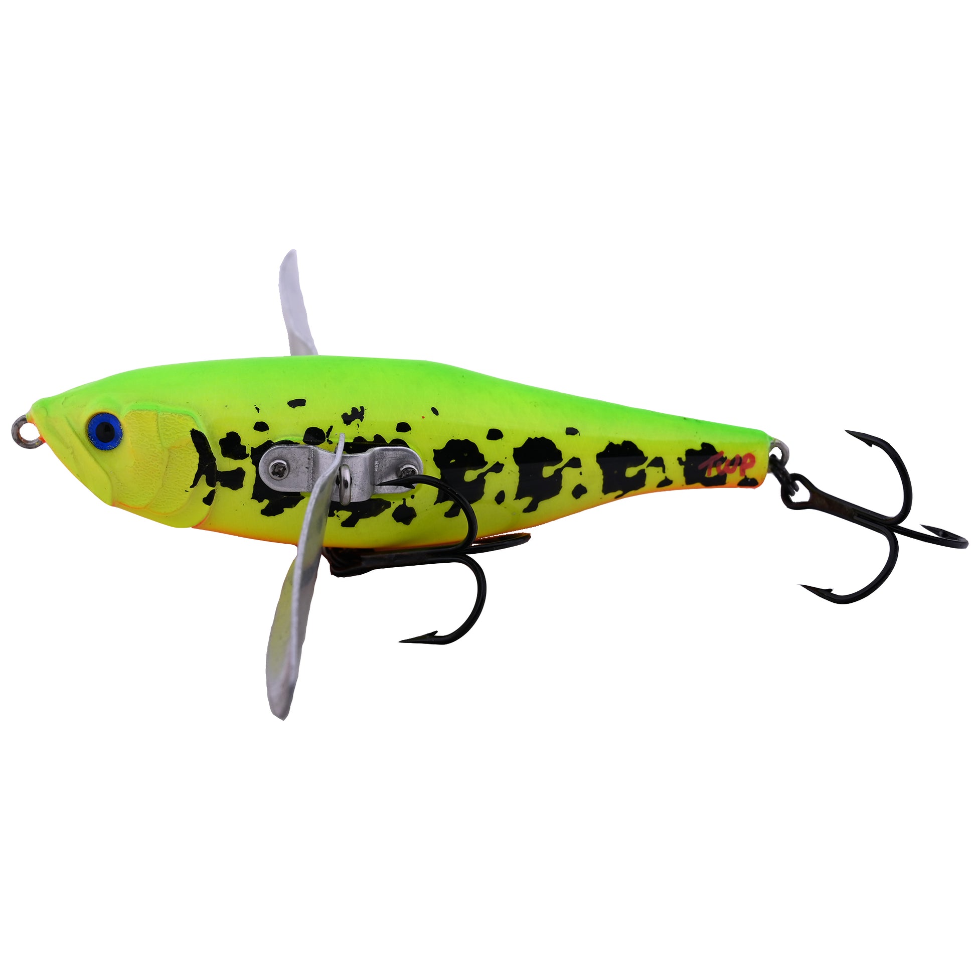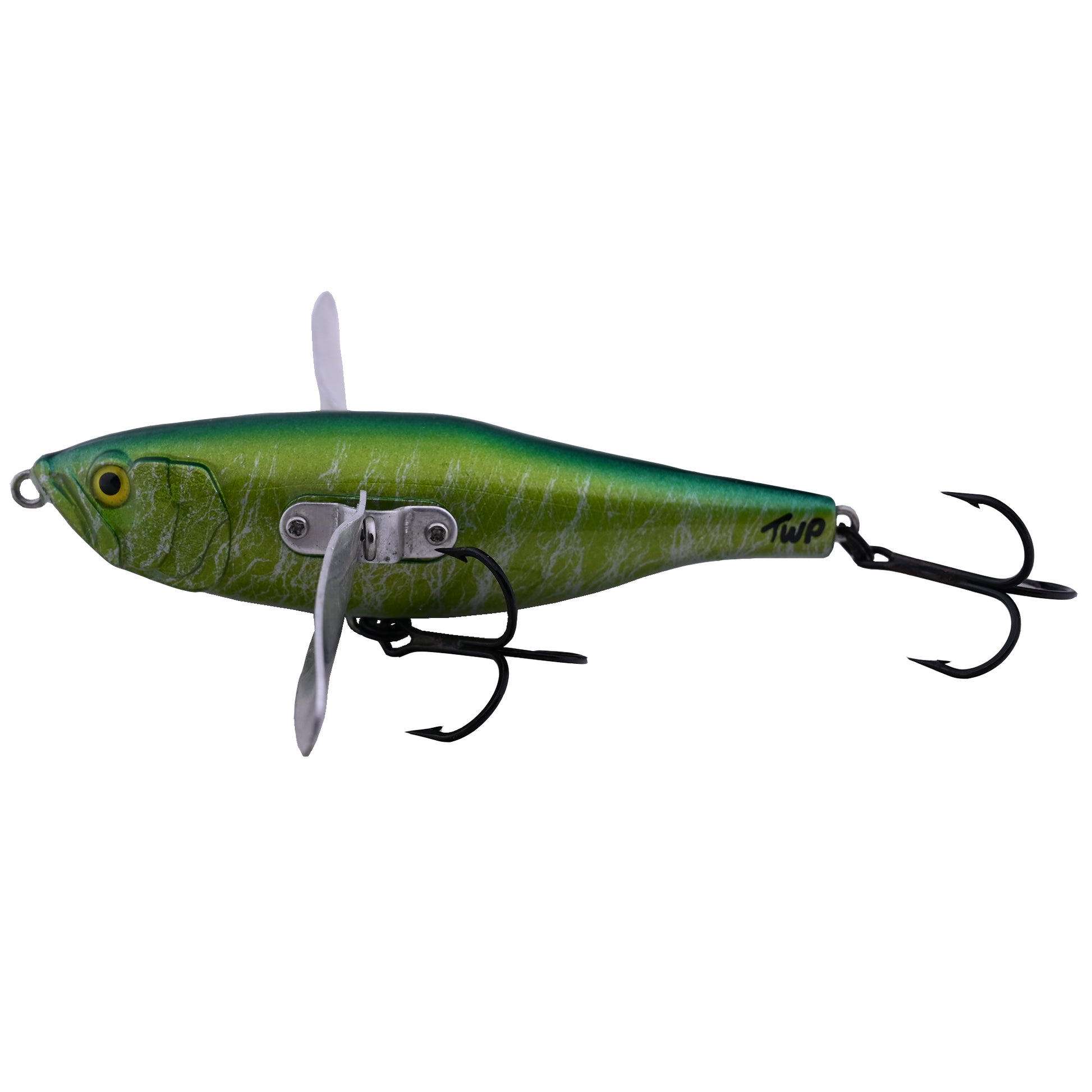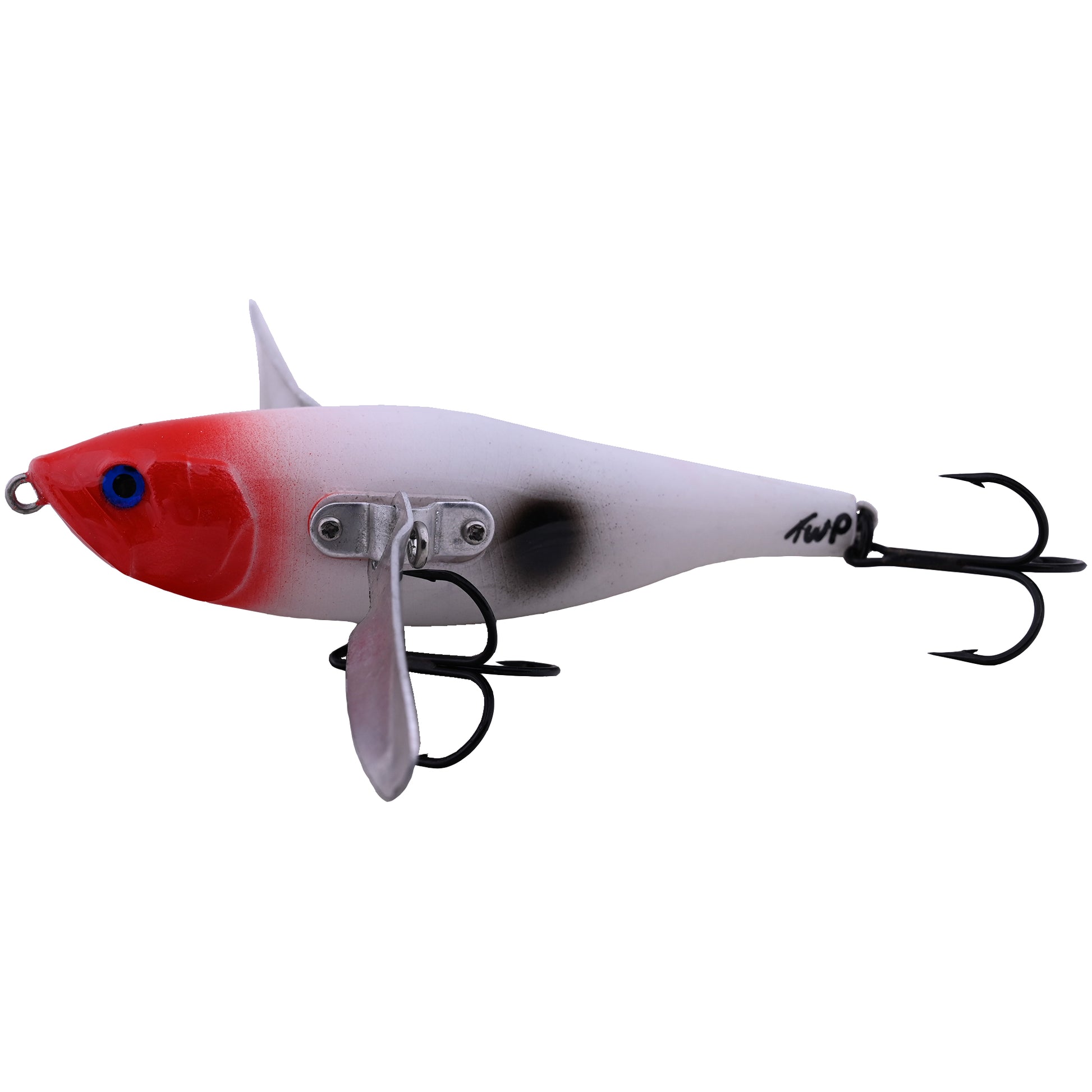 Ein Crawler der Superlative, das beschreibt den Boogie Bomber am besten. Mit seinem gedrungenen Körper und den großen Flügeln paddelt er wie wild um sein überleben über die Wasseroberfläche. Die Druckwellen simulieren dabei einen kleinen Vogel oder gar eine Fledermaus die eine Bruchlandung im Wasser gemacht haben und versuchen unversehrt ans Land zu kommen. Leichte Beute für Hecht und Wels! Durch Rotation der Stellschrauben in der Flügelmitte kann der fette Crawler individuell eingestellt werden. Am besten eignet er sich im Stillwasser aber leichte Strömung ist für ihn auch kein Problem. Zur Köderführung gibt es eigentlich nur eins zu sagen, auswerfen, Rutenspitze nach oben, einkurbeln und geile Attacken bekommen! Ausgestattet mit Rosco Sprengringen #3 und VMC Drillingen #1/0